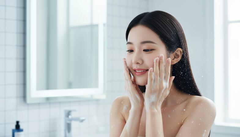 ピーリング剤を使用して肌表面の角質を優しく除去し、