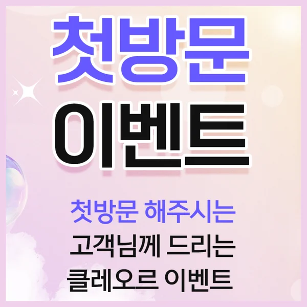 클레오르의원을 처음 방문한 고객님에게 적용되는 이벤트입니다. 카카오톡 플러스친구 대상 적용되는 이벤트 혜택입니다. 이벤트 구성은 원내 상황에 따라 종료 혹은 변경될 수 있습니다. 한가지 시술 1회 가능 VAT는 별도입니다.